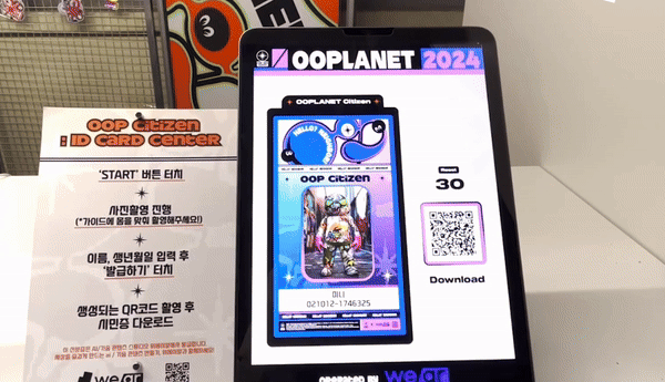 2024년 웁서울 페스티벌에서 선보인 AI 기반 시민증 제작 콘텐츠,