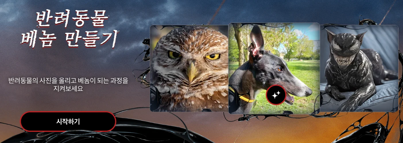 베놈 캐릭터로 변환된 이미지를 생성할 수 있는 장을 마련했습니다.