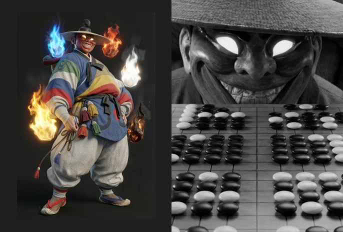도깨비가 놓는 수 끝에 터져 나오는 오방색은