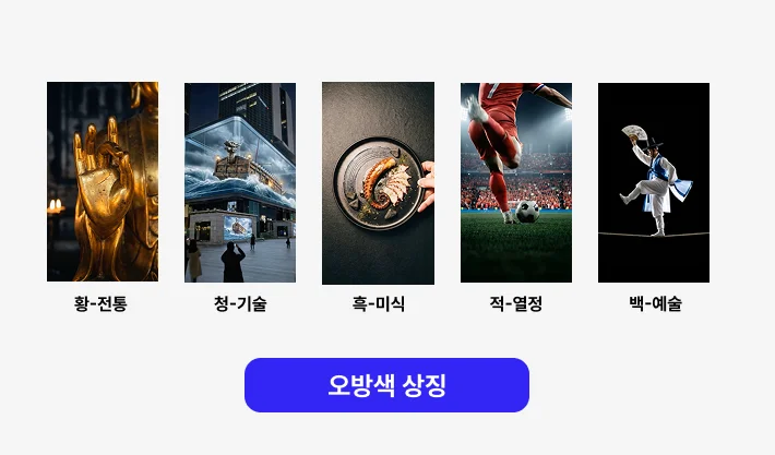 전통(황), 기술(청), 미식(흑), 열정(적), 예술(백)을 의미하죠.
