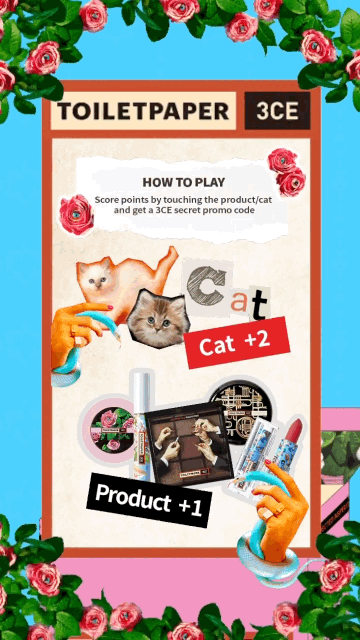 3CE와 TOILETPAPER의 특별한 협업이 게임으로 탄생한 AR 필터인데요,