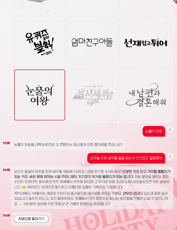 tvN 인기 드라마 명대사를 기반으로 한 맞춤 메시지를 생성해주는 콘텐츠였죠.