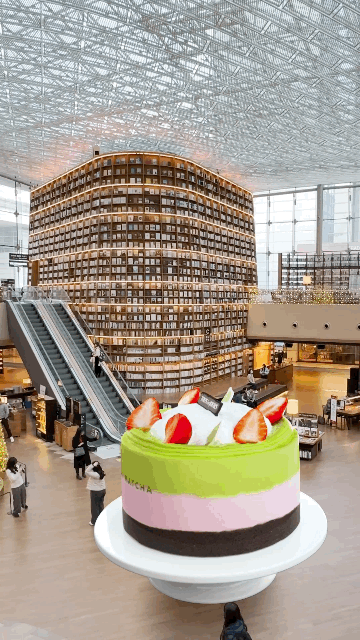 초록빛 말차와 상큼한 딸기가 어우러진 거대한 케이크,