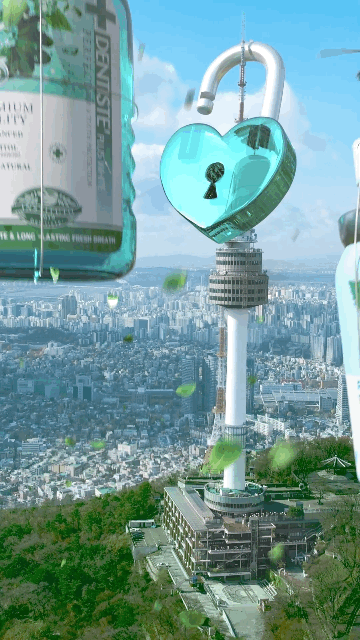 거대한 덴티스테 제품을 착지시키는 장면을 통해